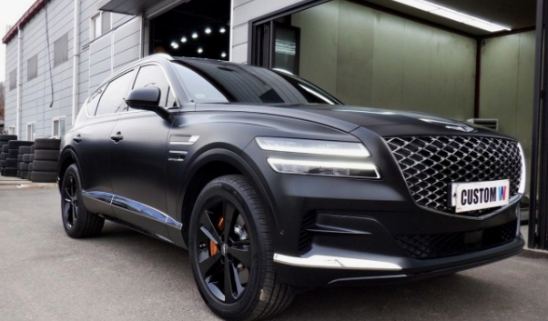 GV80 Black은 고급스러운 매트 블랙 페인트와 함께 브랜드의 아이코닉한 다이아몬드 패턴 그릴로 강렬한 인상을 줍니다.
